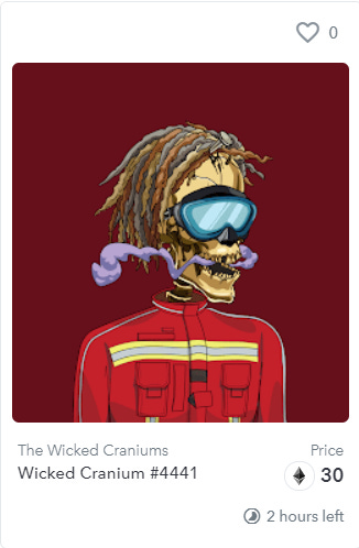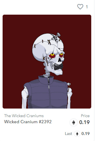 If you missed the Bored Ape Yacht Club run (check out my first piece explaining the Bored Ape Yacht Club here) and want to start getting involved in the NFT world, prices are low enough in The Wicked Craniums that you may want to consider buying one.